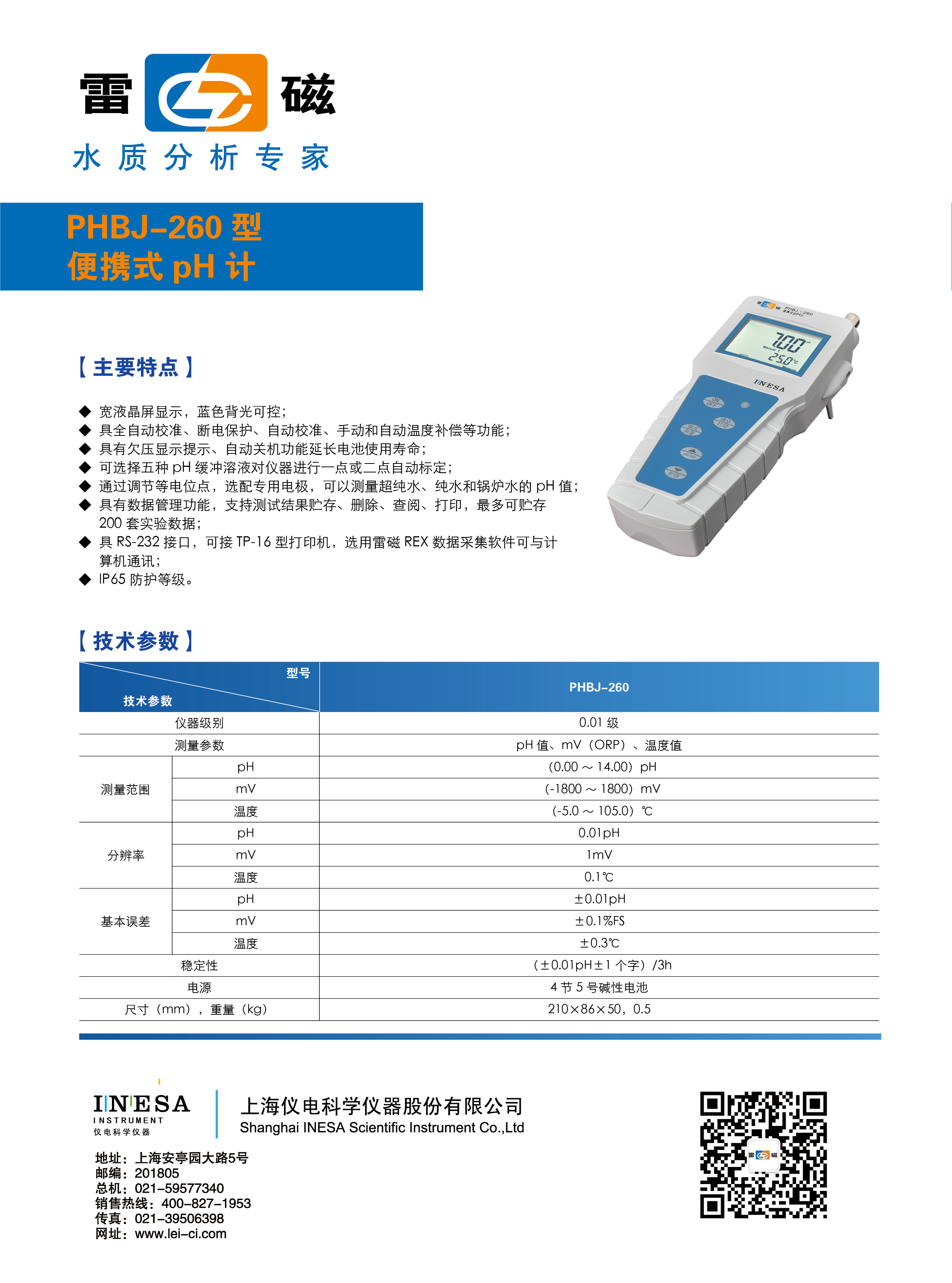 采用全新設計的外形、大屏幕LCD段碼式液晶,顯示清晰、美觀,具有自動標準緩沖溶液識別功能,具有識別4.00pH、6.86pH、9.18pH等三種標準緩沖溶液的能力,方便用戶使用。