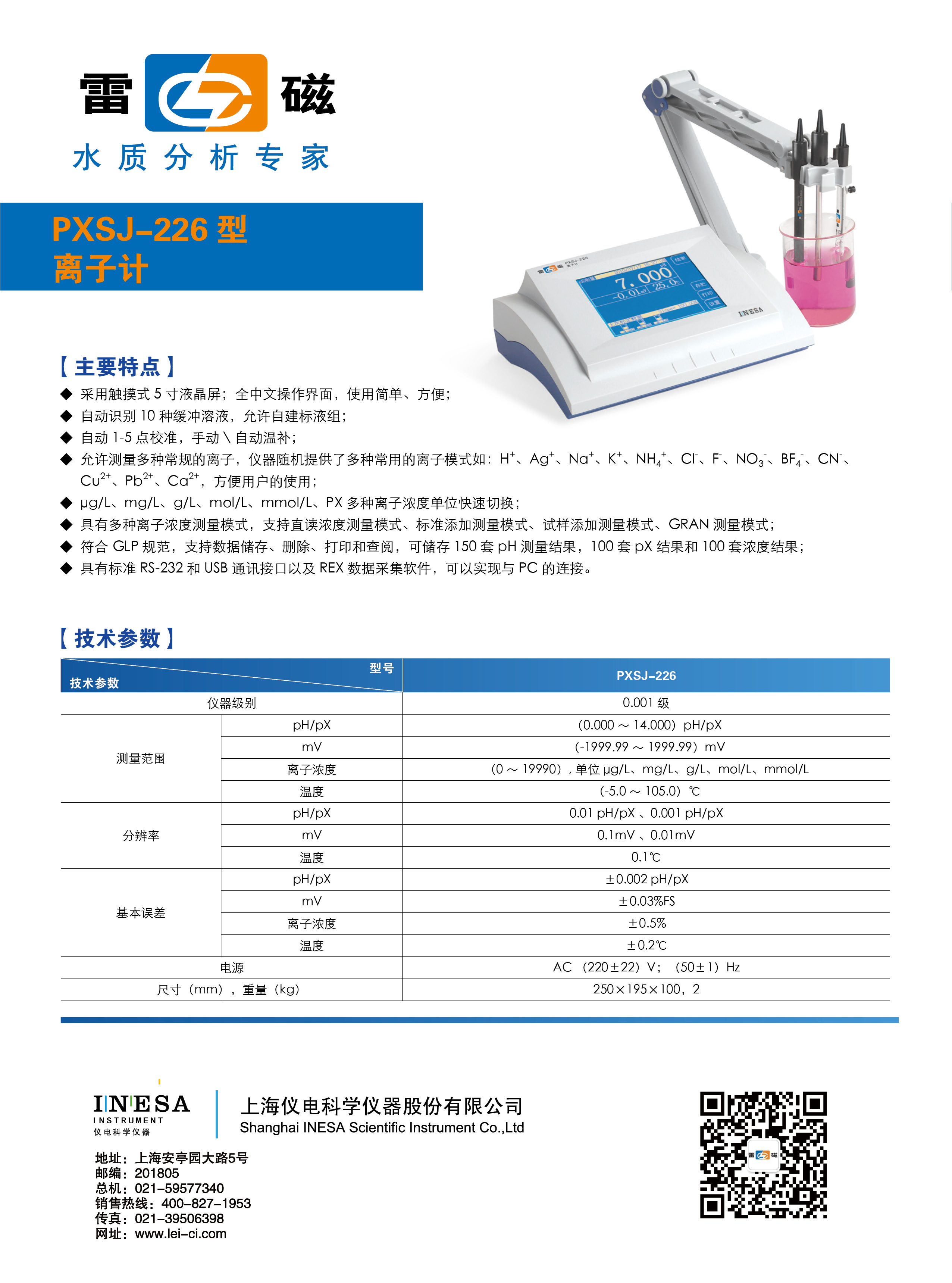 分辨率 | pH/pX | 0.01 pH/pX 、0.001 pH/pX |