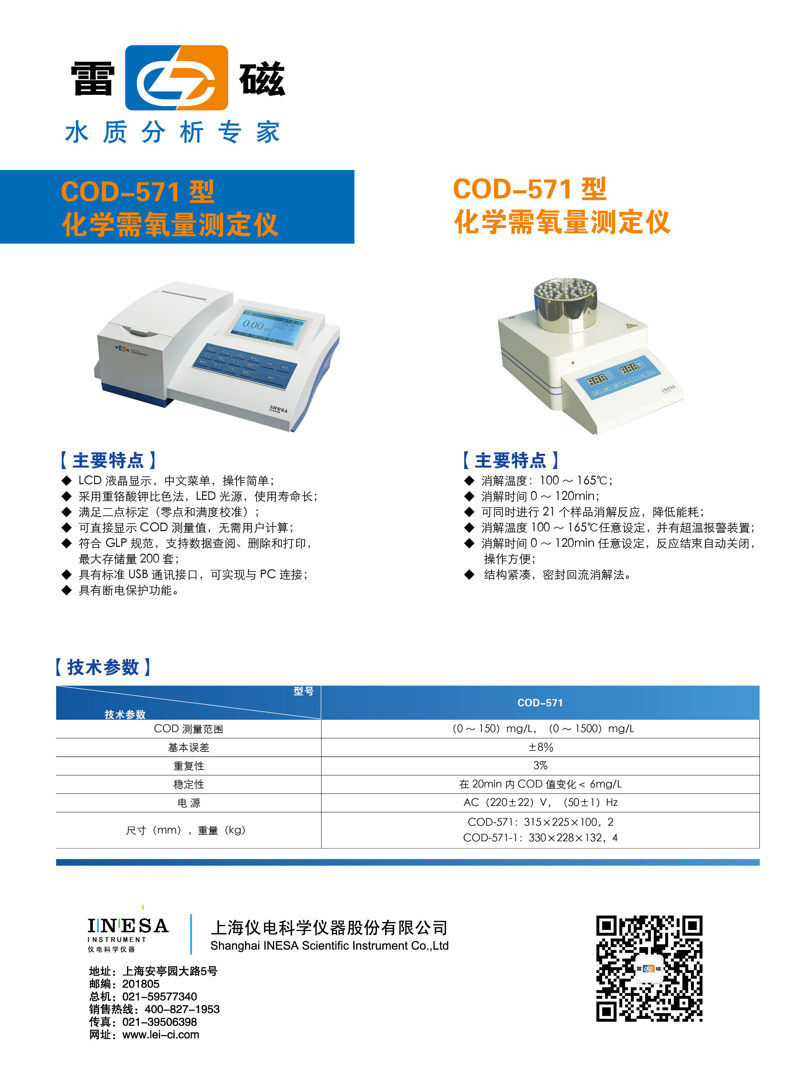 上海雷磁化學(xué)需氧量測定儀COD-571型