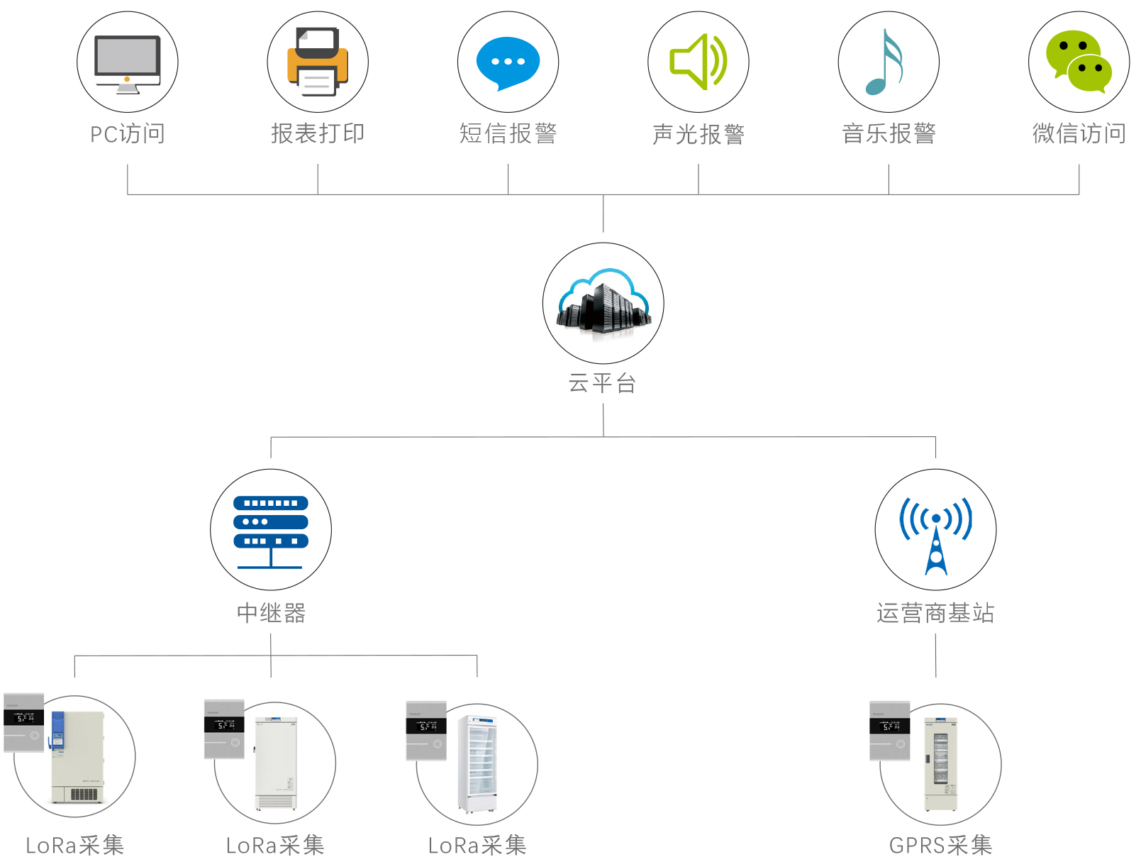 多重報(bào)警:實(shí)時(shí)聲光報(bào)警,短信、微信報(bào)警功能同步啟動,多重預(yù)警保障樣品安全;