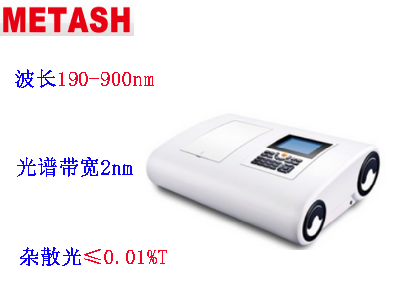 上海元析V-5800(PC)型可見分光光度計波長范圍320-1100nm,光譜帶寬2nm,雜散光≤0.05%T;V-5800(PC)型可見分光光度計雙光束比例監測光學系統,波長自動校準、自動設定、偏差自我修復,能直接建立標準曲線,V-5800PC型標配元析公司的掃描軟件可直接完成光度測量、定量測試、定性測試、動力學測試、多波長測試、DNA/蛋白質測試及數據圖譜的處理。